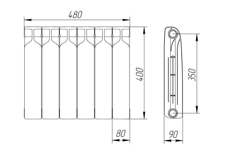 Отзывы на Радиатор биметаллический Теплоприбор(россия) BR1-350\90, кол-во секций: 6, 8.4 м2, 804 Вт