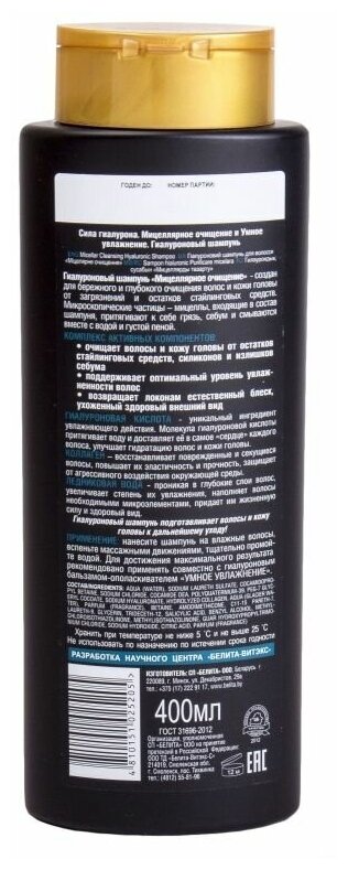 Шампунь для волос "Мицеллярное очищение" 400 мл Сила Гиалурона, Белита, 67148657