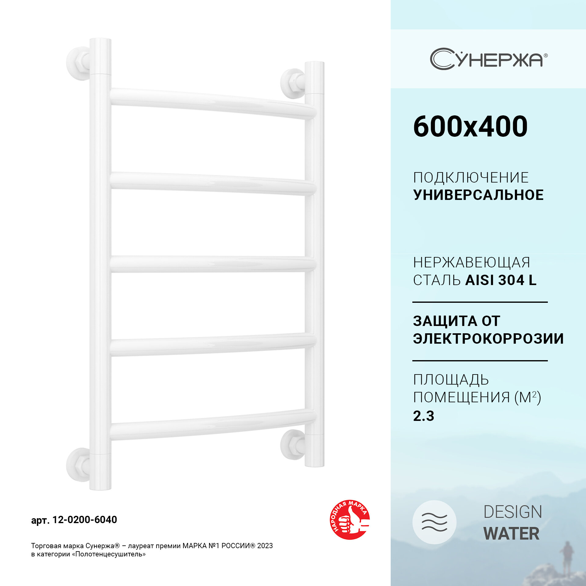 Сунержа Полотенцесушитель водяной Сунержа 12-0200-6040 Галант+ 600х400 мм, белый информация: