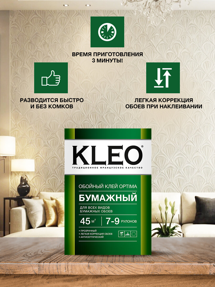 Отзывы на Клей обойный для бумажных обоев KLEO OPTIMA 7-9, 120г, 45 кв.м.