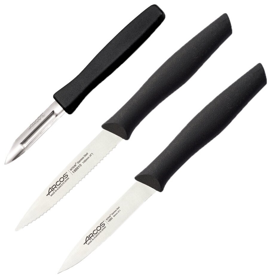 Набор из 3 ножей ARCOS, для чистки и нарезки овощей , рукоять черная