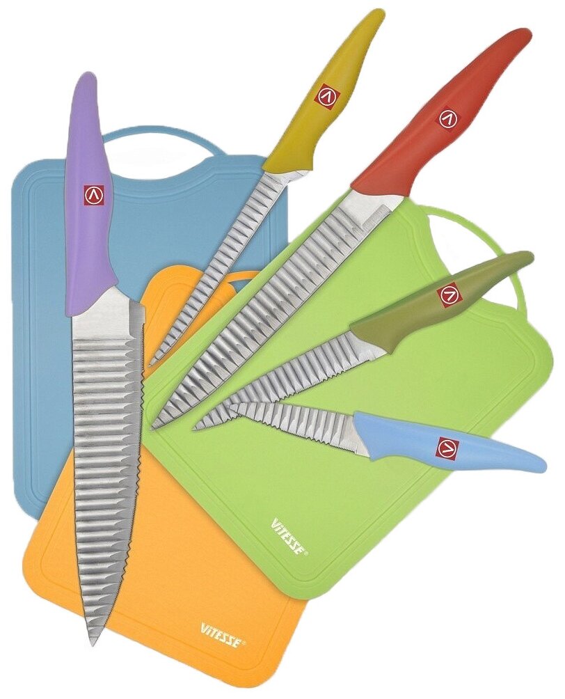 10 цен на Набор ножей 5шт VITESSE + доска раделочная 3шт нержавеющая сталь VS-8139