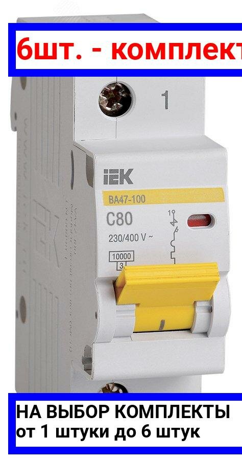10 цен на Выключатель автоматический однополюсный ВА47-100 80А C 10кА | код. MVA40-1-080-C | IEK (6шт.в упак.)