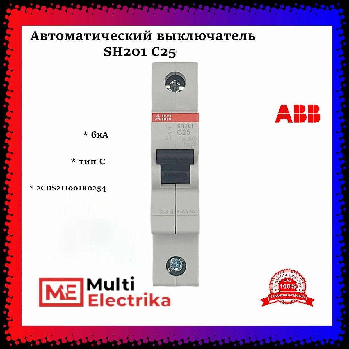 Выключатель автоматический модульный 1п C 25А 6кА SH201 C 25 ABB 2CDS211001R0254 (10шт.в упак.) информация: