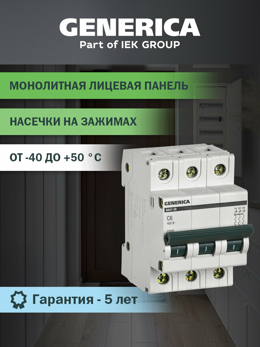 Автоматический выключатель IEK GENERICA 3P 6А (C) 4.5кА, MVA25-3-006-C информация: