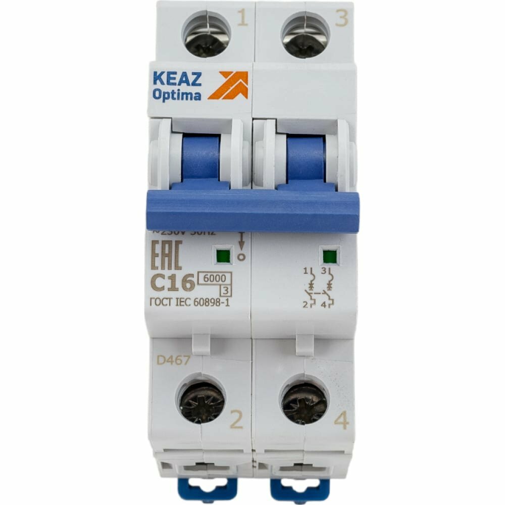 Выключатель автоматический КЭАЗ 2-полюсный (2P) 16А хар. C тип AC 6кА 260599 OptiDin BM63 (2 модуль) информация: