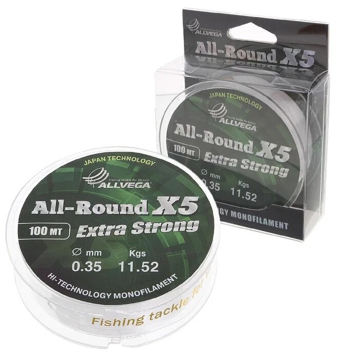 Отзывы на Леска монофильная Allvega ALL-ROUND X5 0.35мм 100м, 11,52кг, прозрачная