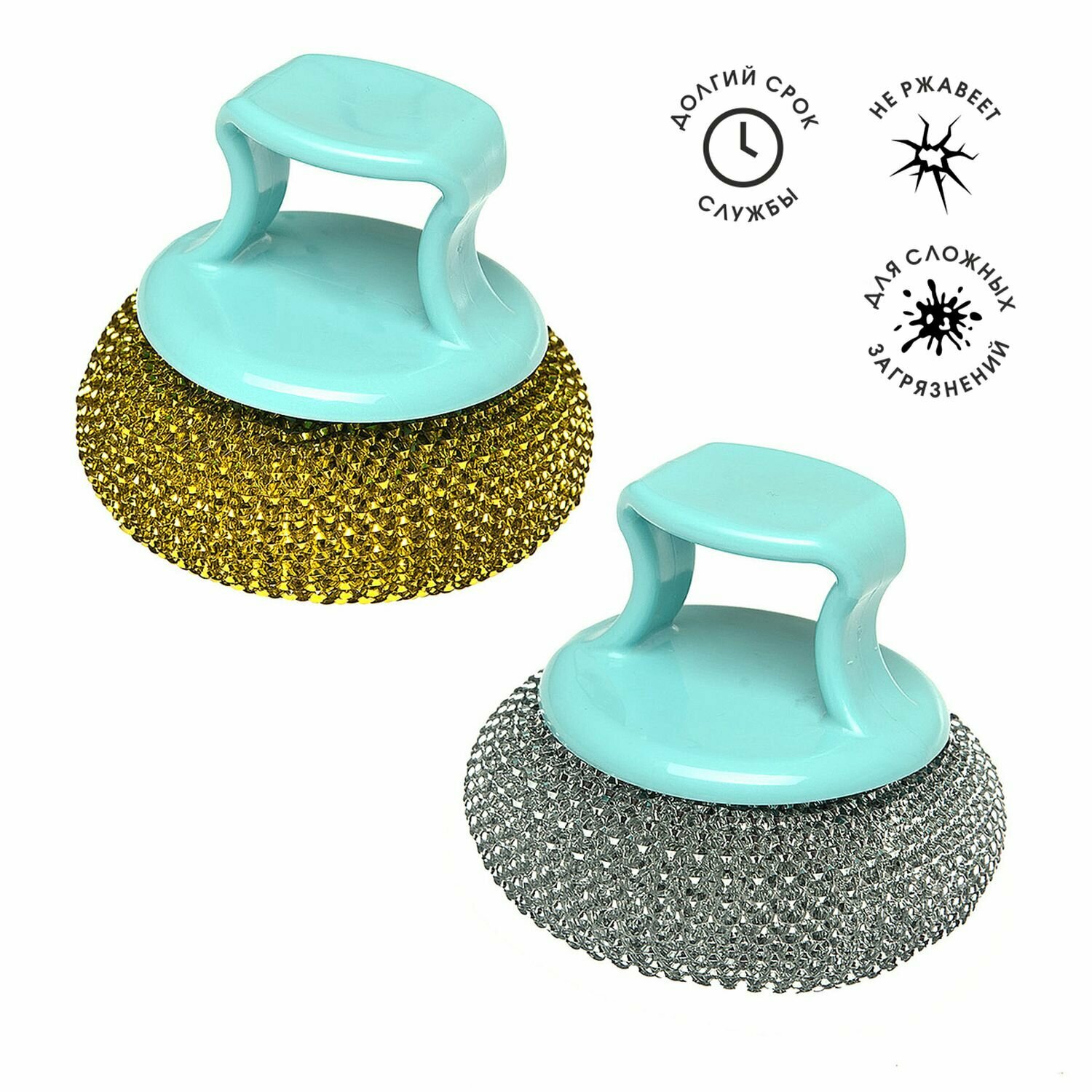 Мочалка скрабер, сетка, с держателем, 8.5х8.5х8 см