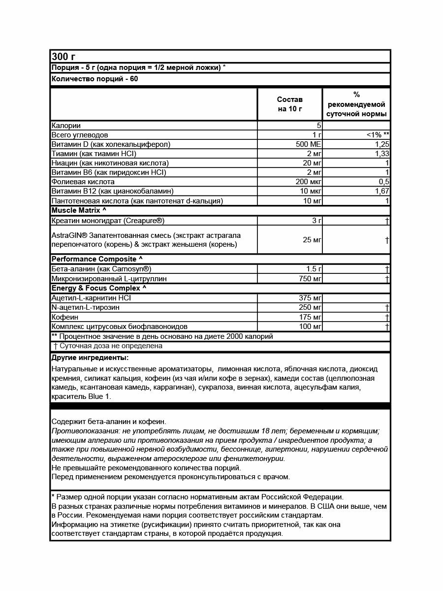 | Основные ингредиенты | бета-аланин |