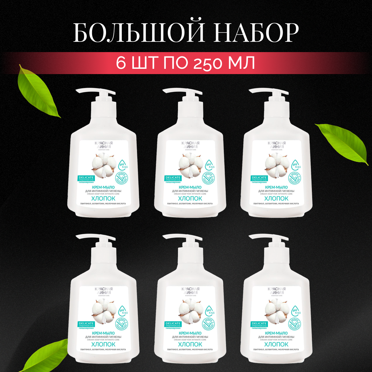 Крем мыло Красная линия для интимной гигиены с экстрактом хлопка 250 мл 5 шт 918 ₽