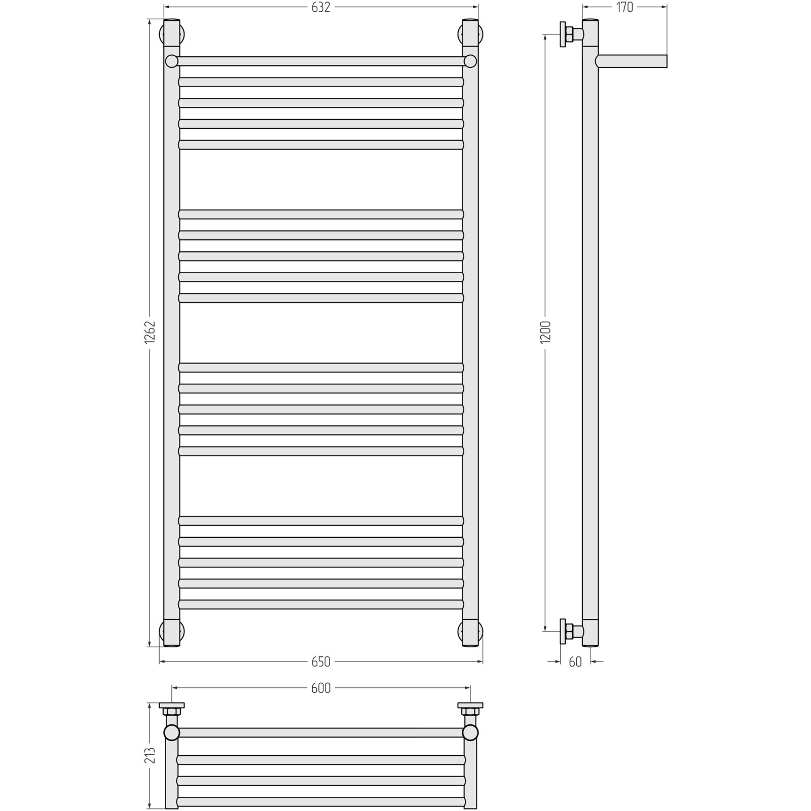 10 цен на Полотенцесушитель водяной Сунержа Богема с полкой+ 1200х600 Без покрытия 00-0223-1260