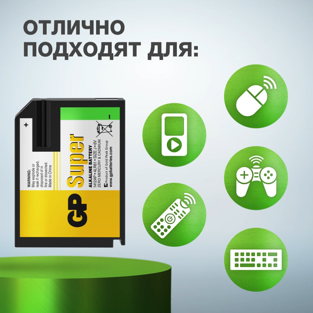 GP 4LR61/size J 6V Alkaline Super BL1 GP1412AP-2CR1, 1шт. 265 ₽