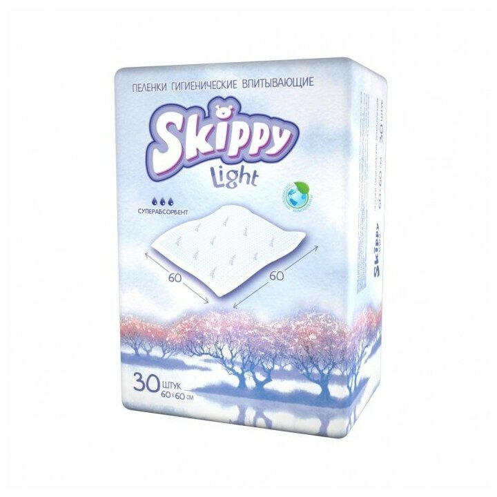 Пеленки одноразовые впитывающие Skippy 7051 Light 60х60 см, 30 шт . информация: