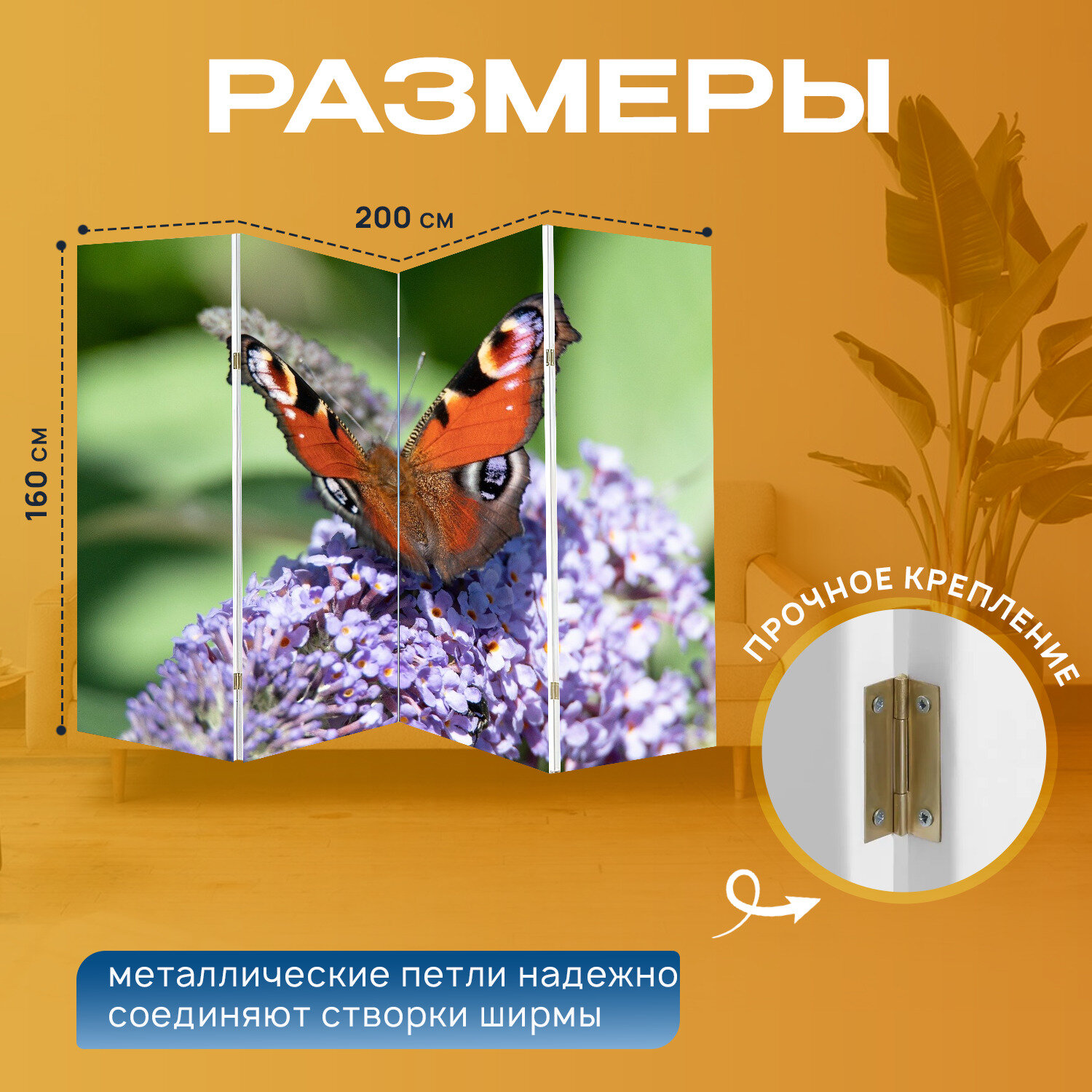 Ширма "Бабочка павлиний, бабочка, летний сиреневый" раскладная перегородка для зонирования с принтом на холсте информация: