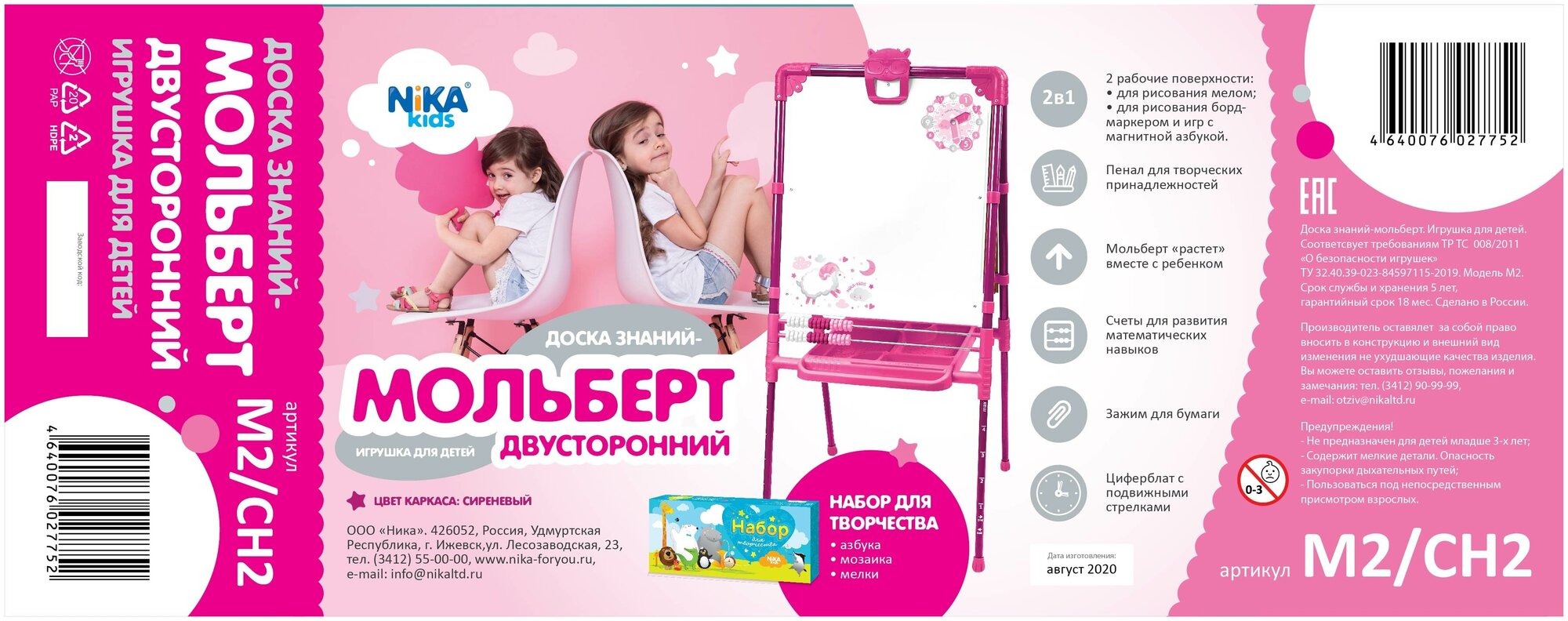 Мольберт детский / Доска для рисования Nika М2/СН2 (Purple) информация: