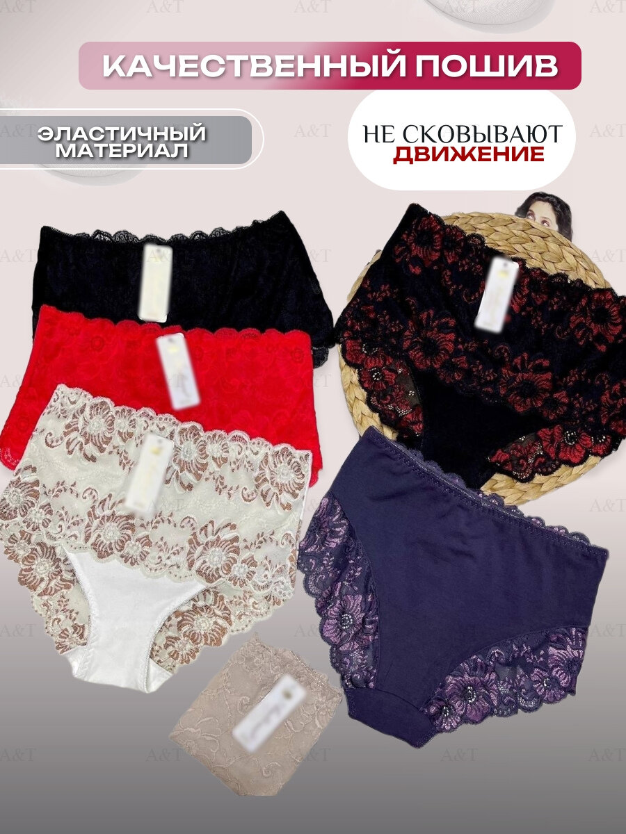 Трусы кружевные высокие, больших размеров слипы набор 5шт,размер 50 4 460 ₽