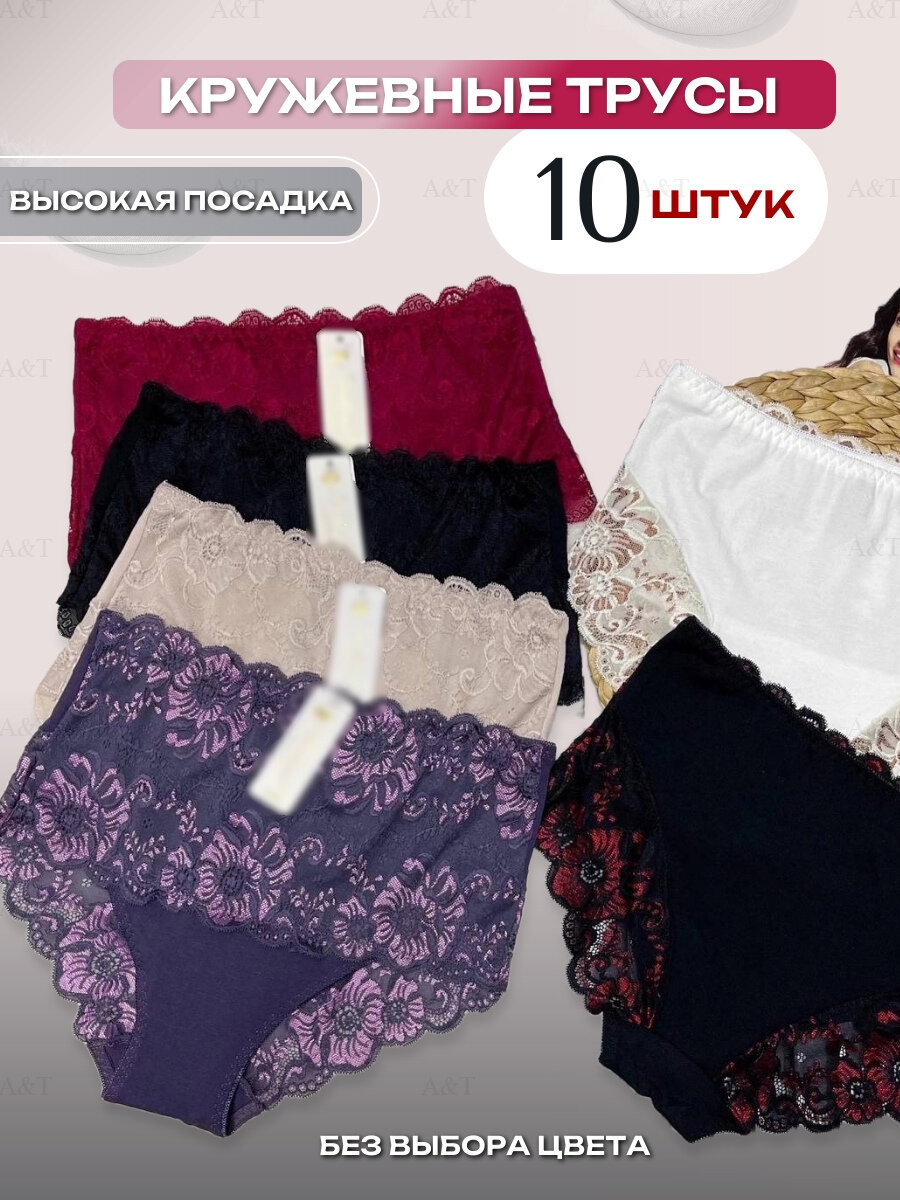 10 цен на Трусы кружевные высокие, больших размеров слипы набор 10шт,размер 56