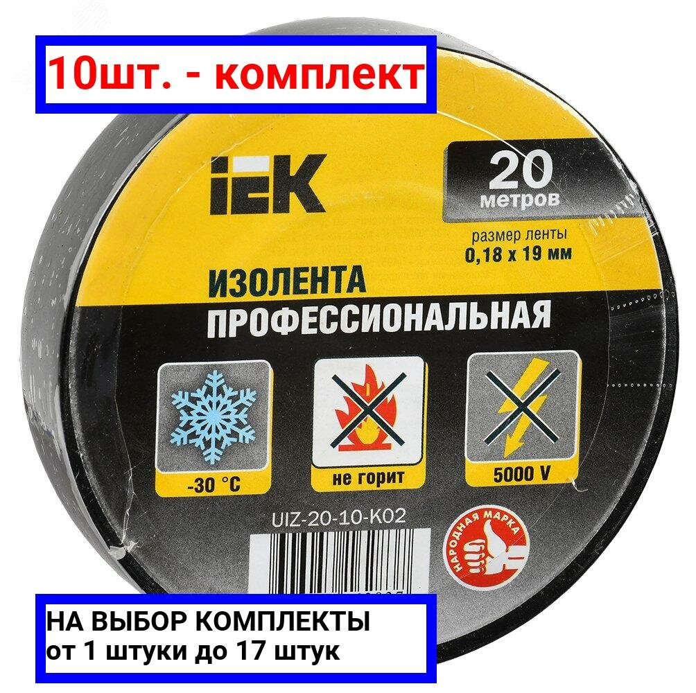 10 цен на 10шт. - Изолента ПВХ черная 19мм 20м / IEK; арт. UIZ-20-10-K02; оригинал / - комплект 10шт