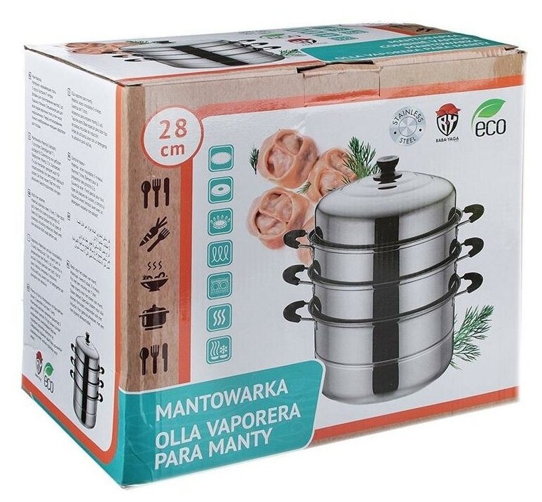 Мантоварка, 28см, нержавеющая сталь, 3 яруса