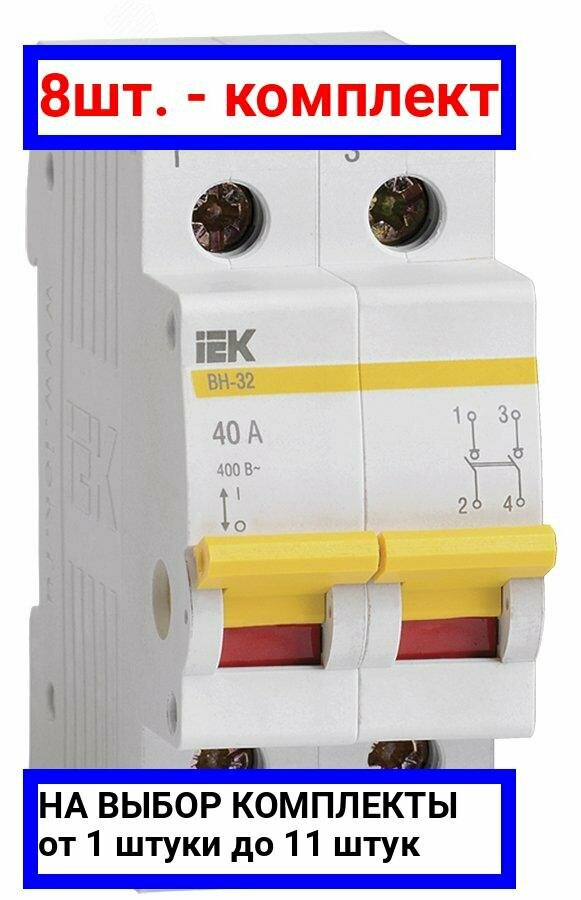 9шт. - Выключатель нагрузки 2п ВН-32 40А / IEK; арт. MNV10-2-040; оригинал / - комплект 9шт 4 389 ₽