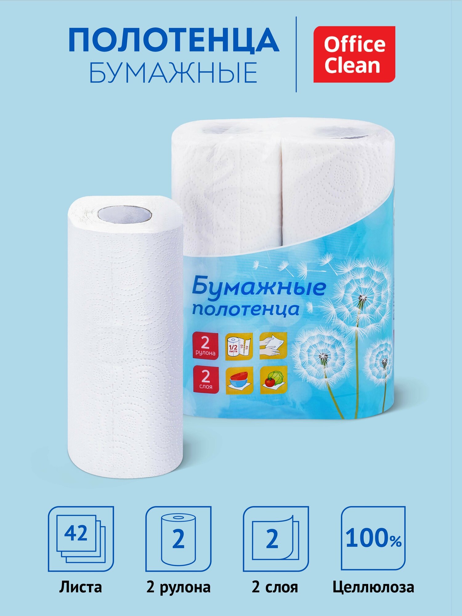 10 цен на Бумажные полотенца в рулоне 9,6 метров OfficeClean для дома кухонные / салфетки 2-слойные для лица белые / 2 рулона