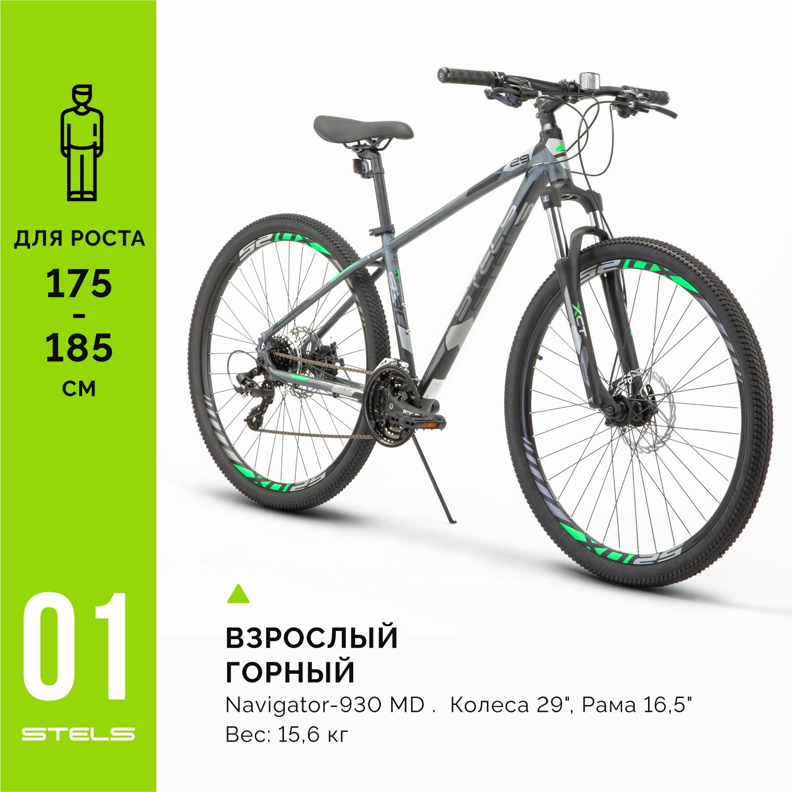 Велосипед STELS Navigator 930 MD 29" V010 Антрацитовый/Зеленый рама 18.5 (требует финальной сборки) 2023 39 500 ₽