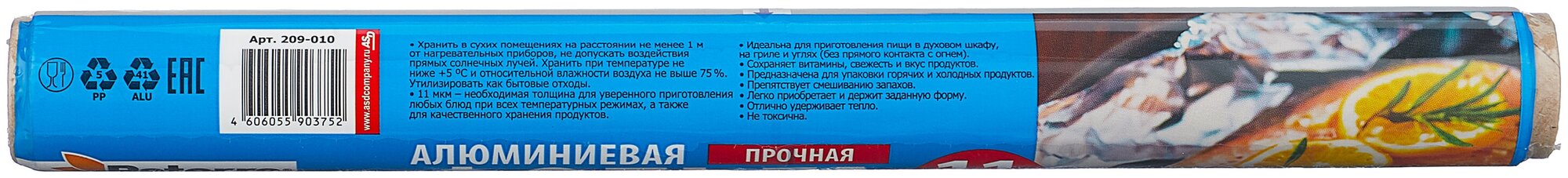 Фольга алюминиевая Paterra Прочная, 11 мкм, 29 см x 10 м информация: