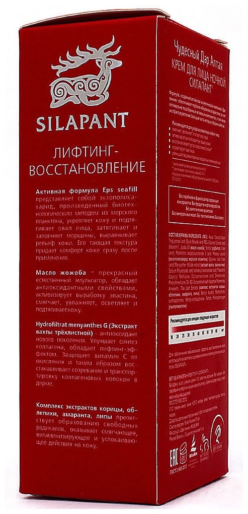Силапант ночной крем для лица Лифтинг и восстановление, 50мл. Алтайская пантовая косметика