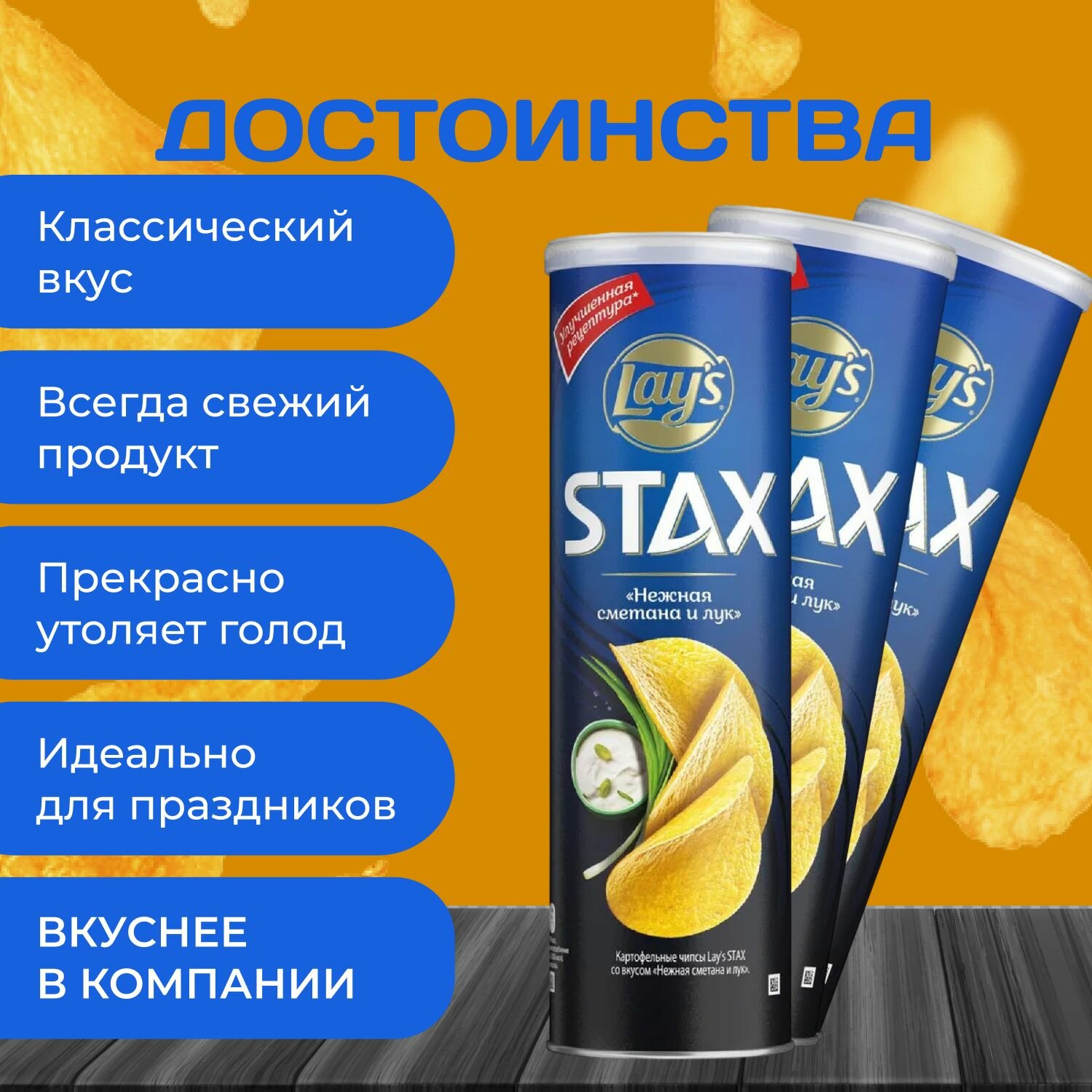 Отзывы на Картофельные чипсы Lays Stax "Сметана и лук" 140 гр. 9 шт. Лейс