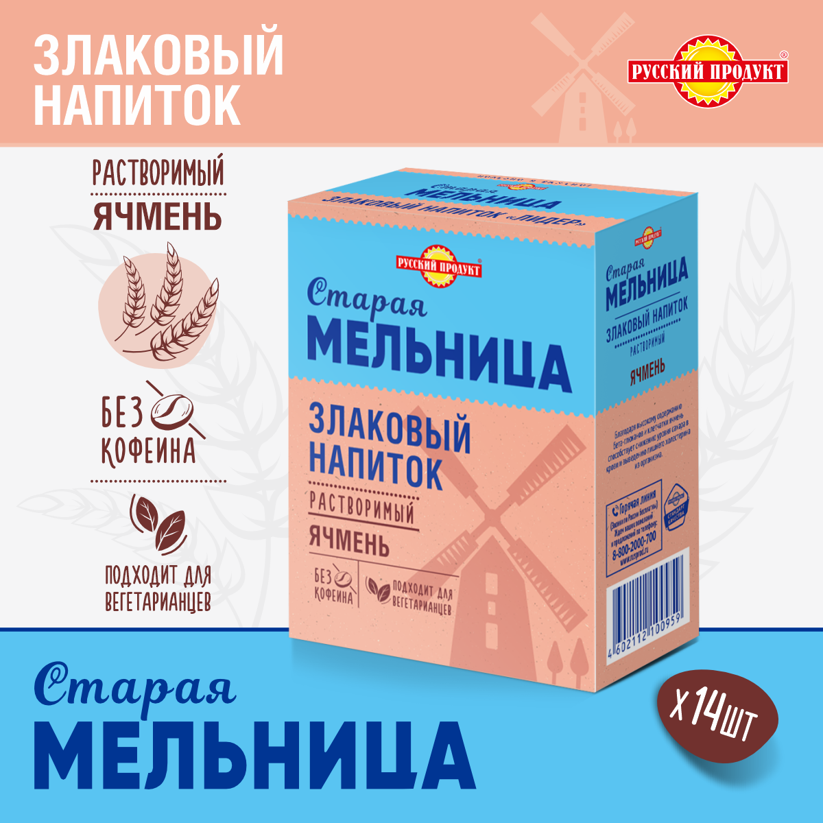 Напиток злаковый Старая Мельница Лидер без кофеина ячменный 100 г x 14 шт в упаковке, Русский Продукт информация: