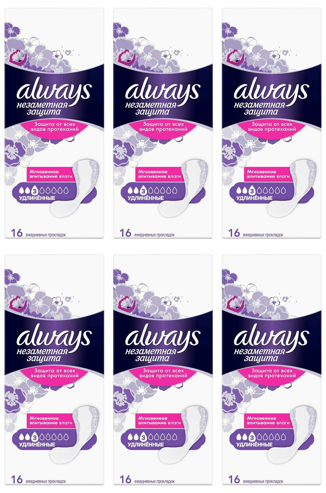 Always Ежедневные гигиенические прокладки Незаметная защита, удлиненные, ароматизированные, 16шт/уп, 6 уп / 2 456 ₽