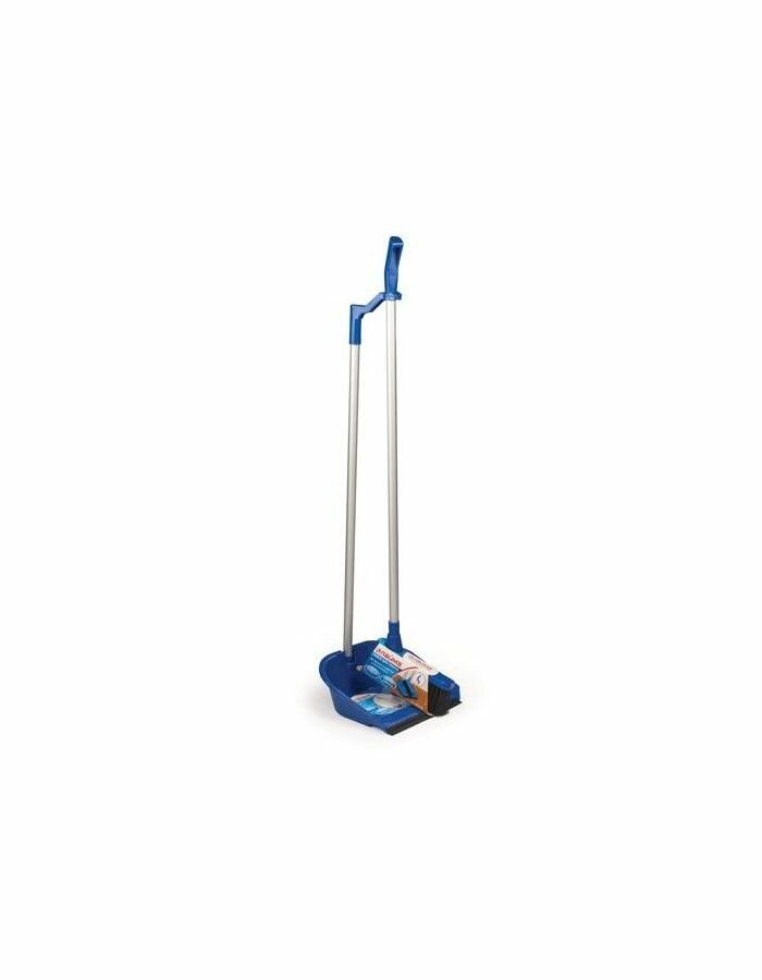 Совок для мусора + щетка, пластик, резиновая кромка, алюминиевые рукоятки 70 см, синий, LAIMA, 601472