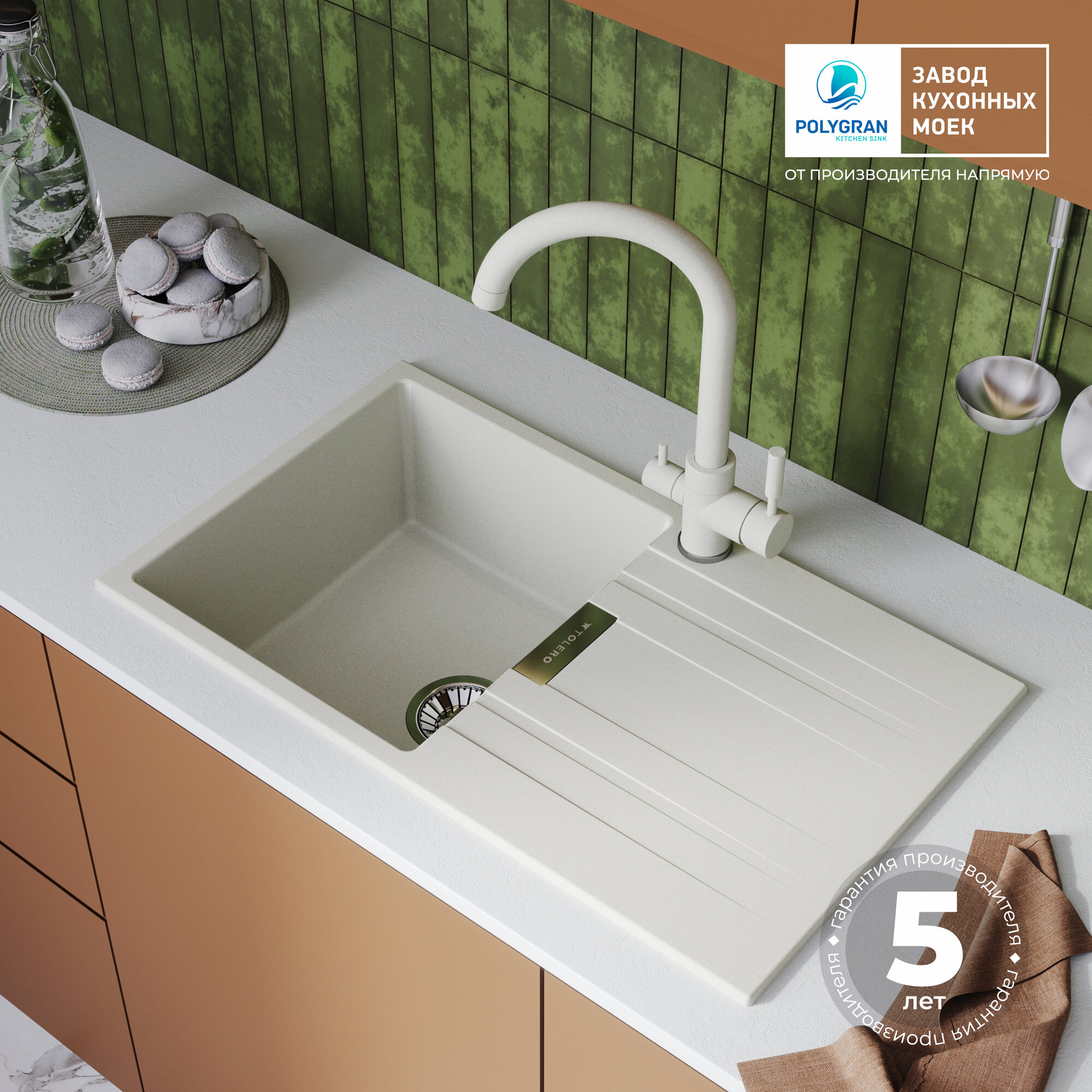 Отзывы на Мойка для кухни кварцевая с крылом TOLERO Loft TL-750 белая (Туман)