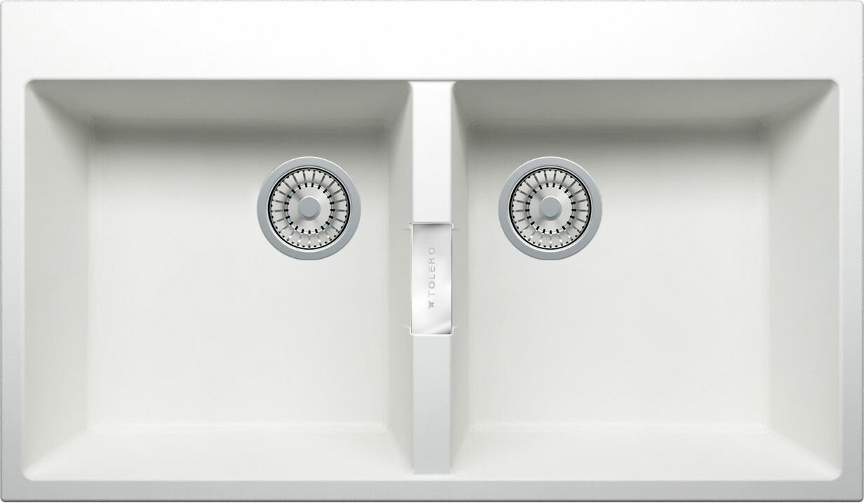 Кухонная мойка TOLERO Loft TL-862 дизайнерская, с двумя чашами и системой скрытого перелива из кварцевого песка (Германия) (№923 Белый)
