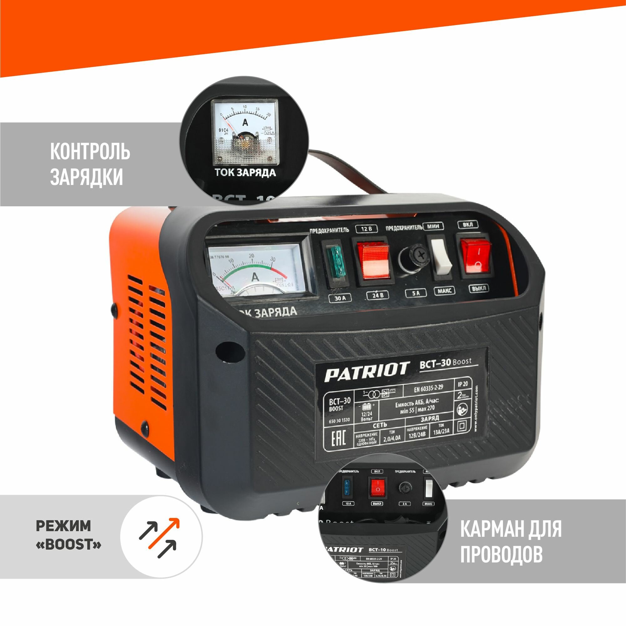 Зарядное устройство PATRIOT BCT-30 Boost черный/оранжевый
