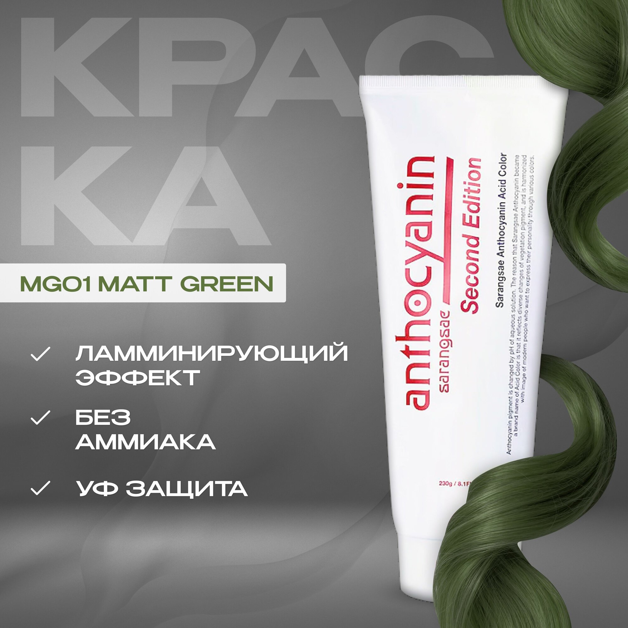 Anthocyanin Серо-зеленая краска для волос MG01 Matt Green 230 мл ламинирующая без аммиака профессиональная информация: