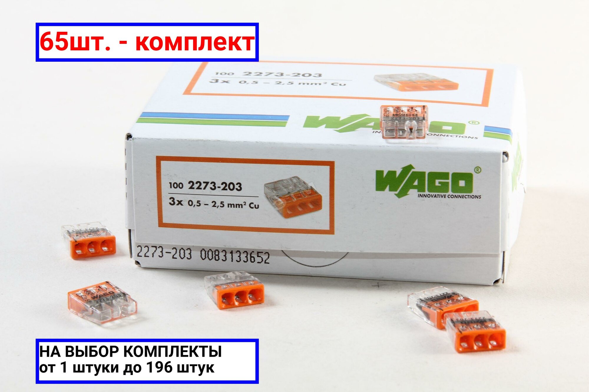 65шт. - Клемма 3x2.5мм оранжевая/прозрачная / WAGO; арт. 2273-203; оригинал / - комплект 65шт информация: