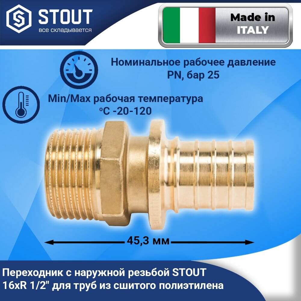 Stout Переходник с наружной резьбой 16xR 1/2" SFA-0001-001612 RG008P0TP3ITR5 .