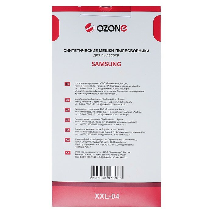 Синтетические мешки-пылесборники Ozone XXL-04 для пылесосов SAMSUNG тип VP-95 530 ₽