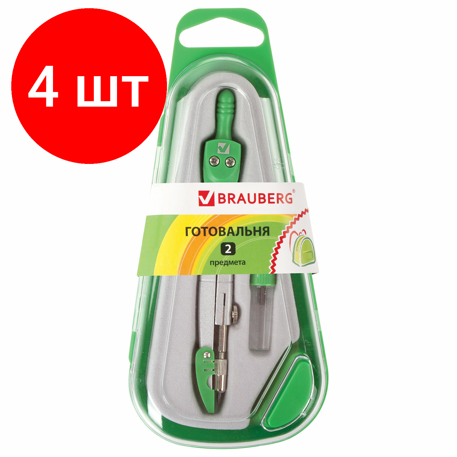 Готовальня BRAUBERG 210320, комплект 4 шт.