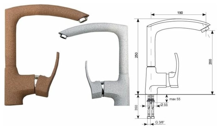 Смеситель для кухни под камень ULGRAN U-005-307 Терракот