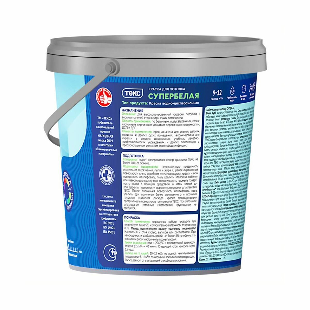 Текс супербелая краска для потолка (Профи) (0,9л) информация: