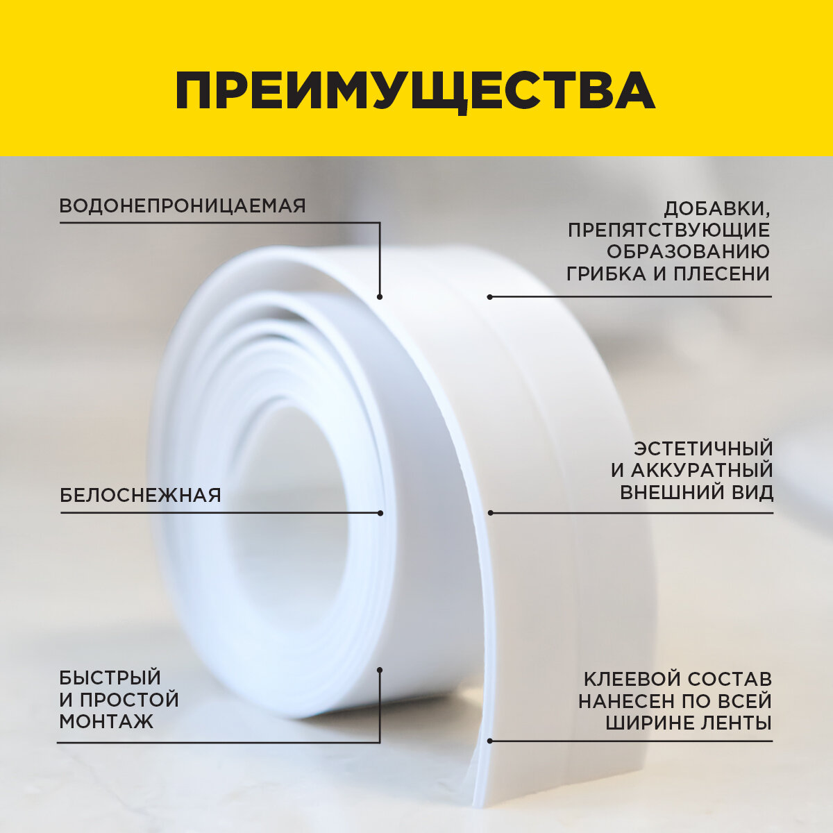 Лента самоклеящаяся бордюрная для раковин и ванн 60 мм*3,35 м 1 546 ₽