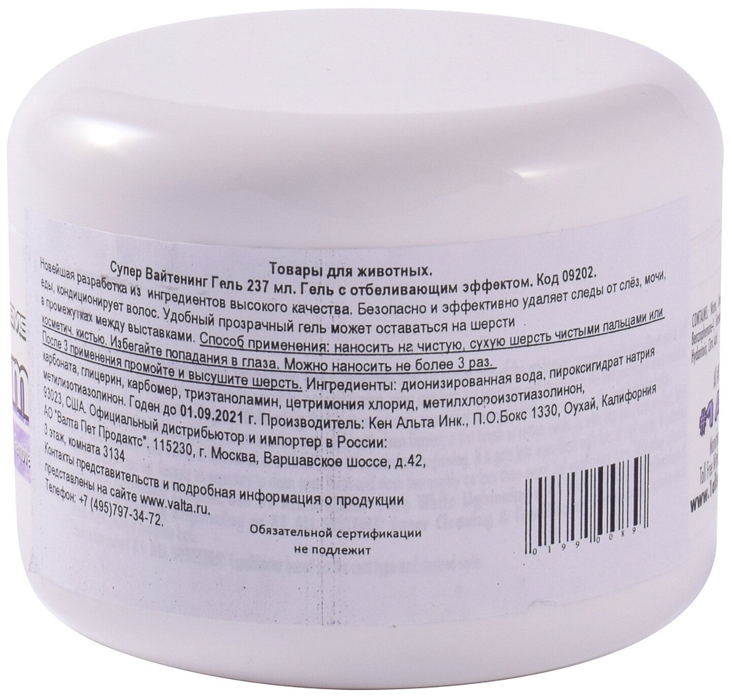Гель #1 All Systems Super Whitening gel отбеливающий шерсть для кошек и собак , 237 мл