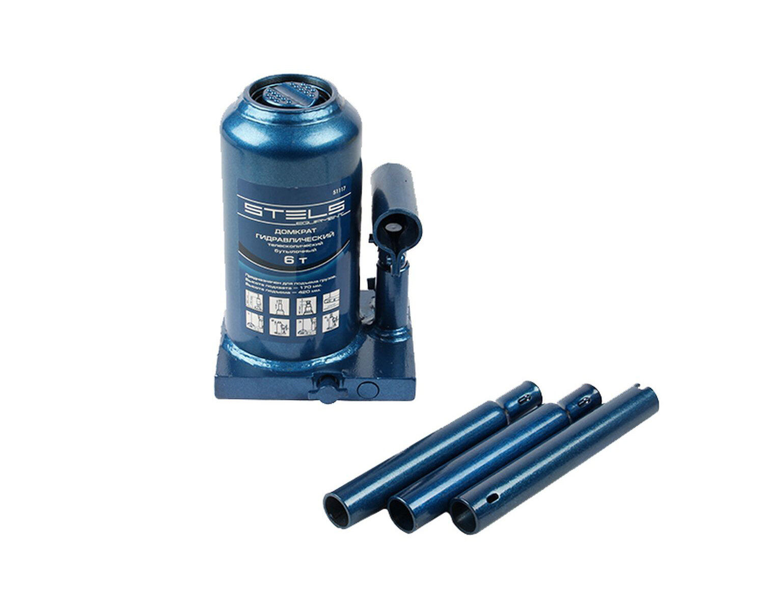 Домкрат гидравлический бутылочный телескопический, 6 т, H подъема 170-420 мм Stels, ( 51117 )