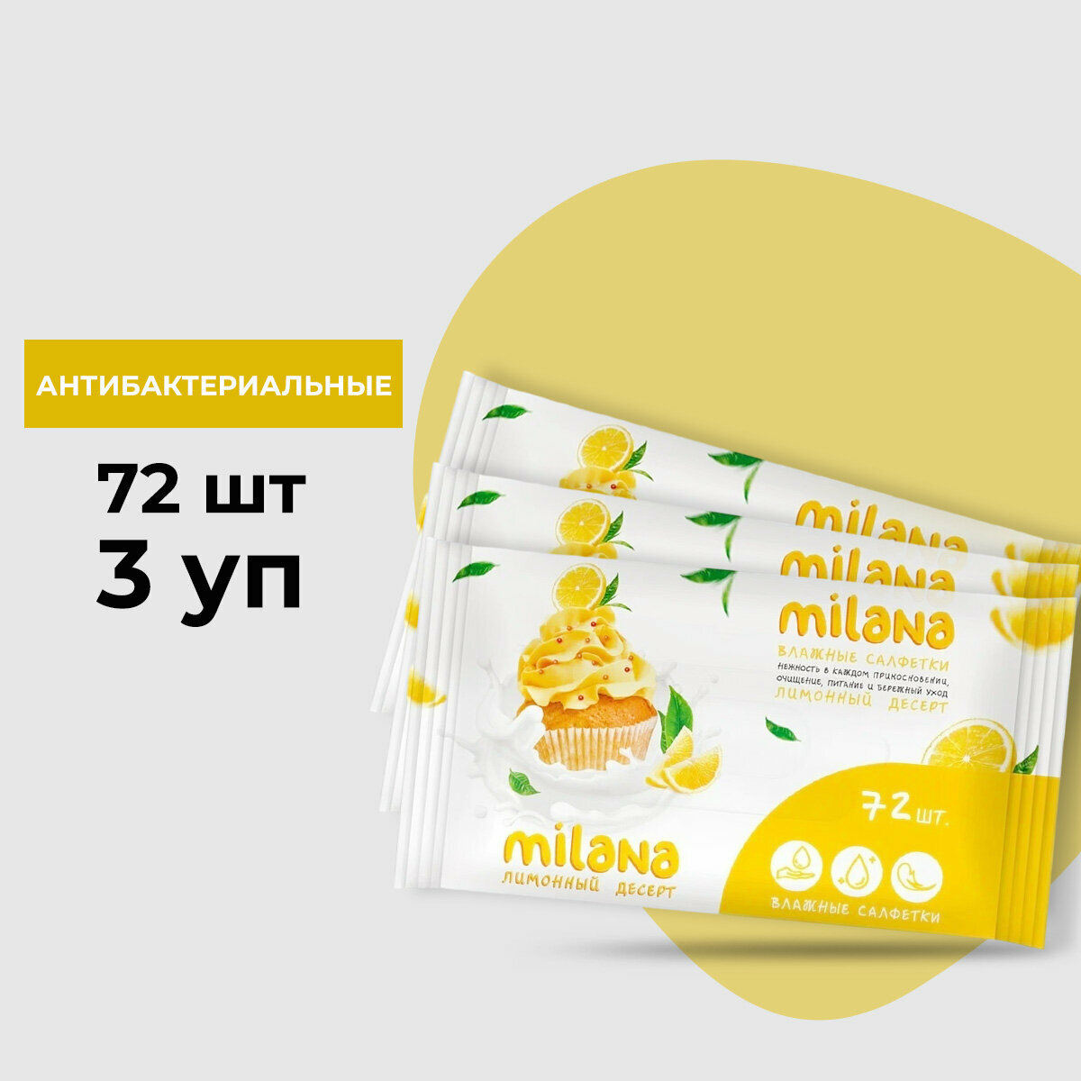 Влажные антибактериальные салфетки Milana Лимонный десерт (72шт)