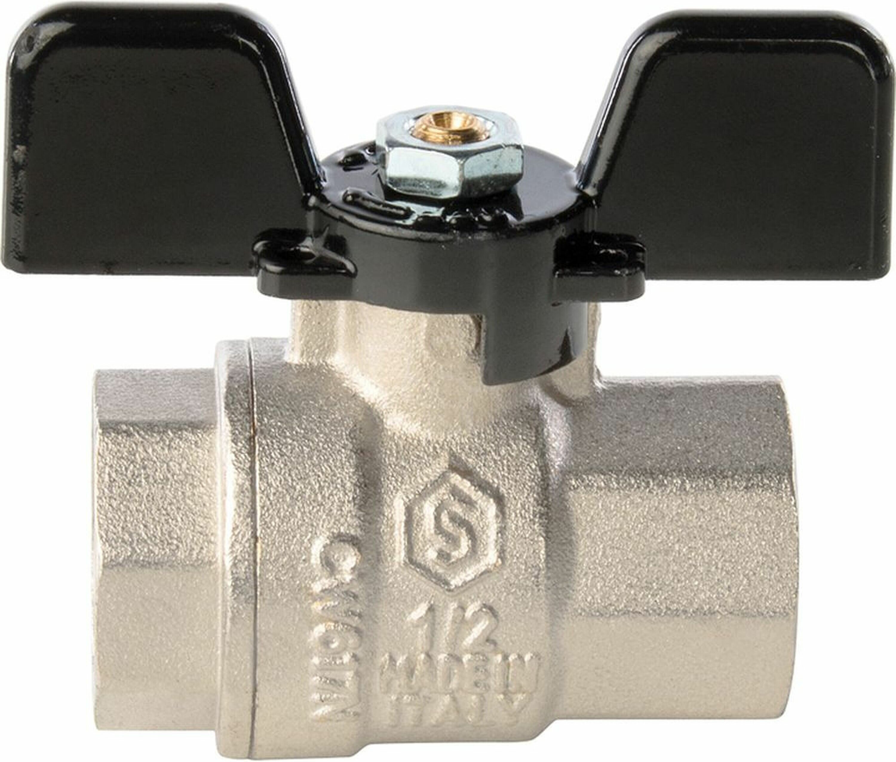 Кран шаровой латунный (SVB-0002-000015) 1/2 ВР(г) х 1/2 ВР(г) бабочка прямой