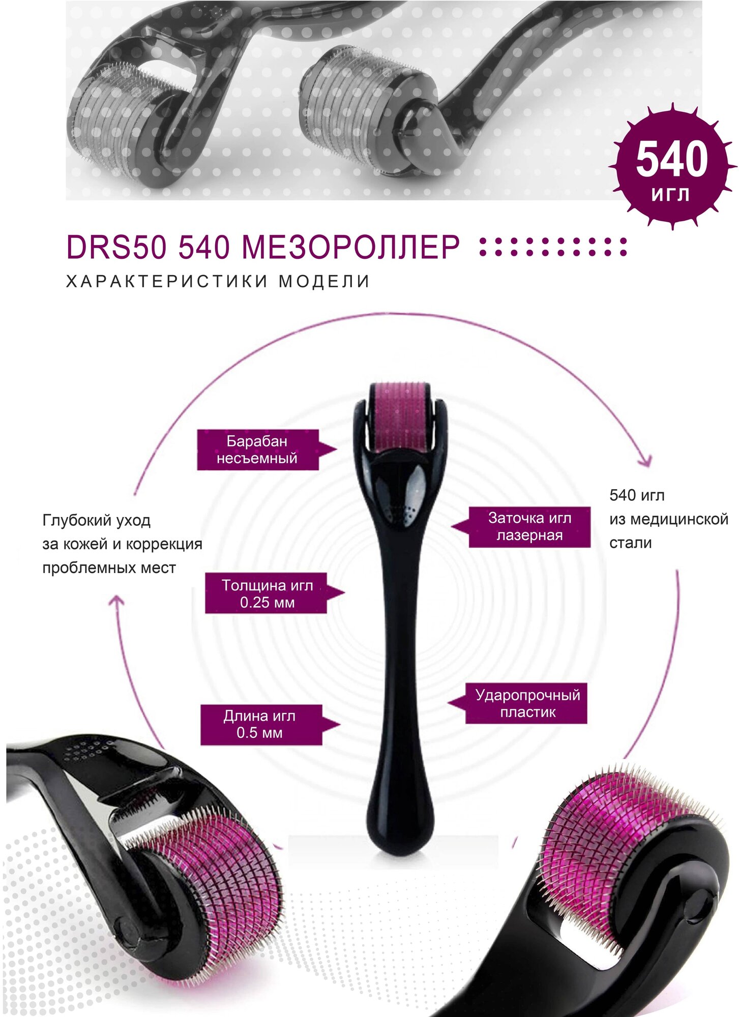| Длина игл мезороллера | 0.5 мм |