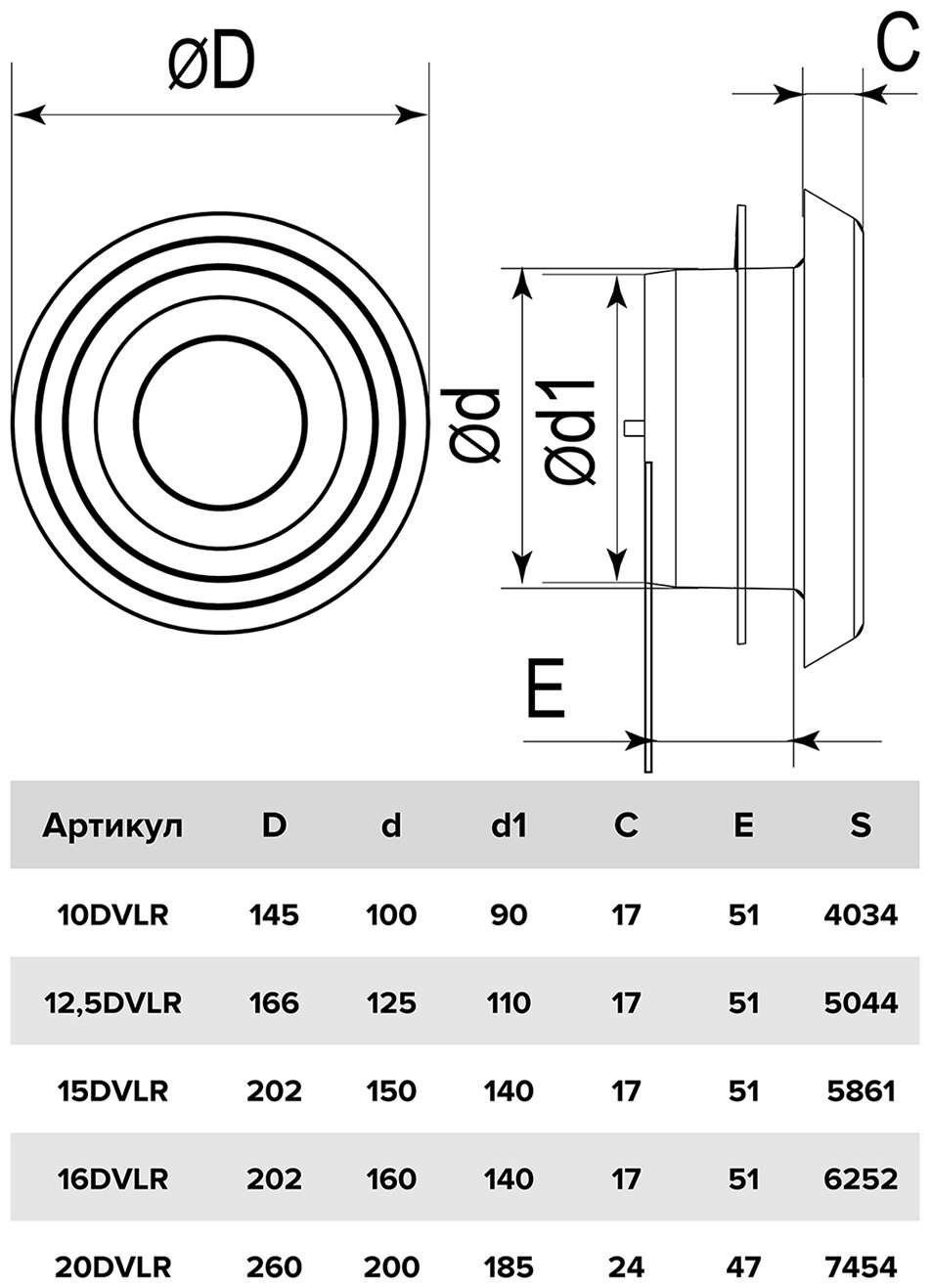 Диффузор ERA 10DK, приточно-вытяжной со стопорным кольцом и фланцем, d=100 мм