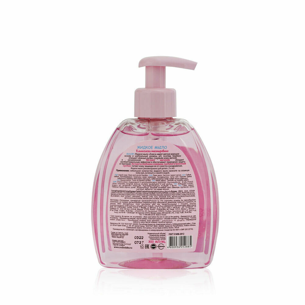 Мыло Свобода "Алиса", Чистота и Защита рук, жидкое, 300 мл